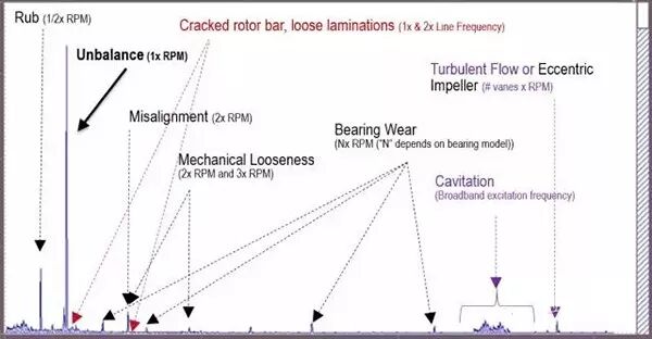 正所谓世界上没有真正完美的东西,主轴也一样,你想要绝对的动平衡是不可能的。所以不平衡的基频始终存在,加之转子旋转时产生的离心力作用于定子,便形成了工频振动,二者同相同频,因此在常规状态下,这个频率点下的振动总是最大的,所以大家一想起机械振动频谱图总是第一时间想到那个老鹰捉小鸡的造型“.i……”