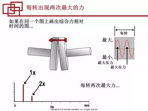 那么为什么不平衡时2倍频(不特指的话,默认就是2倍于工频)会明显变大呢?我不想写了,好麻烦,大家看图说话吧:
