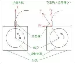 3接触式振动测量使用加速度传感器,安装在轴承座上,注意安装角度。