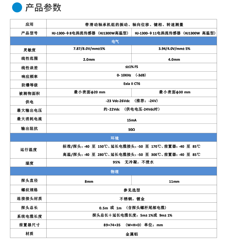 • HJ-1300电涡流位移传感器